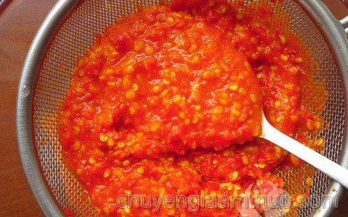 – Đổ hỗn hợp đã xay nhuyễn qua một chiếc rây lọc hoặc một vật dụng khác để loại bỏ hạt lấy phần hỗn hợp sệt sệt